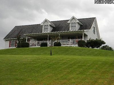 Tranquility and convenience... The best of both worlds! Relax out on the 39x8 front porch with spectacular Tuscarawas Valley and Serene pond views. A private driveway leads to an inviting cape cod nestled on a just over 1 acre lot. Living room opens to a dining room overlooking a deck perfect for entertaining. Fully applianced kitchen with plenty of cabinetry and pantry for lots of storage. Half bath for guests. First floor master suite w/fabulous bamboo flooring, full bath w/whirlpool tub & walk in closet. Second level offers two bedrooms and full bath. Lower level features a family room w/bar great for entertaining. An office or 4th bedroom plus laundry area. Two car heated garage. Everything you are looking for and more! This home qualifies for a NO MONEY DOWN Rural Development Loan. Call for more details!
