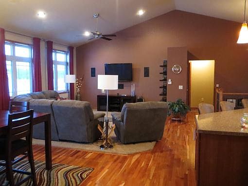 Welcome home to this warm and inviting 4 bedroom, 3 bath home featured in the 2007 Parade of Homes. Amenities include spacious open concept foyer, great room, kitchen, and dinette with vaulted ceilings. American Cherry wood flooring, solid Maple shaker style doors and trim, open dine-in kitchen with cherry cabinetry, pantry, and stainless steel appliances. Master suite with private master bath and walk in closet. Open stairway to partially finished lower level.Fully insulated 3 car garage with heated 3rd stall and entry to basement. Enjoy your view on 3 acres in the Ridgeland Bluff subdivision including patio with gazebo, hot tub, 30 foot above ground pool with salt water purification system, and underground sprinklers. Lower level offers 4th bedroom, full bath, lots ofstorage. Large area that could be finished into rec room. Move in today!