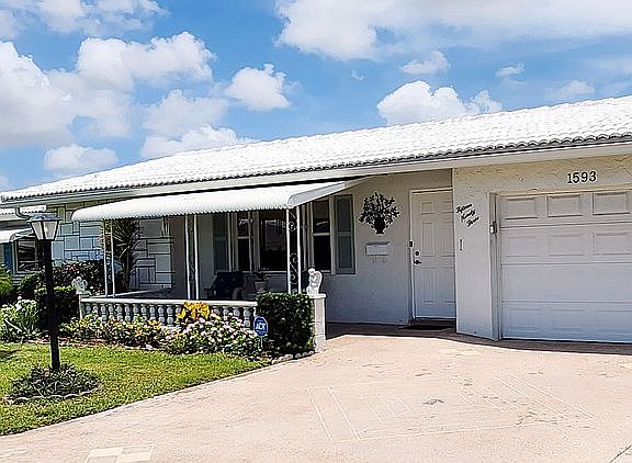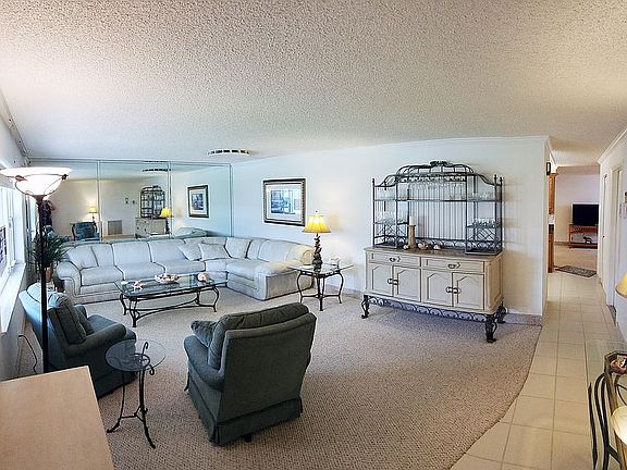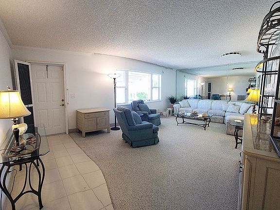 Extended "Challenger" style home with a large kitchen, extra added Florida room and an extra room with closet off of the master bedroom that would be a great space for an office, a dressing room, or a craft room. Also has an oversized driveway. Roof replaced in 2007 and recoated since. A/C replaced in 2010. Located in Palm Beach Leisureville. Built in 1974. Primary bedroom Area: 176 Dimensions: 16 x 11 Bonus room attached to main bedroom Area: 70 + closet space Dimesions: 10 x 7 + closet Primary bedroom Area: 144 Dimensions: 12 x 12 Living room Area: 273 Dimensions: 21 x 13 Kitchen Area: 210 Dimensions: 21 x 10 Dining room Area: 110 Dimensions: 11 x 10 Den Area: 210 Dimensions: 17.5 x 12 Florida room 16.’ 6” inches x 12’ 8” Heating Central, Electric Cooling Ceiling Fan(s), Central Air, Electric Appliances Included: Washer, Dryer, Dishwasher, Microwave, Electric Range, Refrigerator, Water Heater HOA Has HOA: Yes HOA fee: $175 monthly Services included: sprinkler system/irrigation maintenance, painting of roof and house every 6 years Common Areas, Golf, Maintenance Grounds, Fitness Center, Management Fees, Pool (3), Clubhouse/Recreational Facility