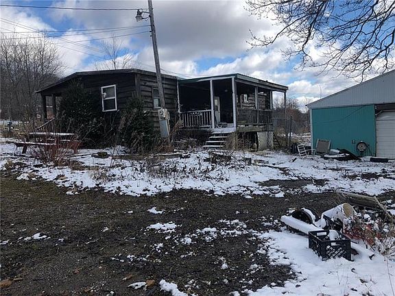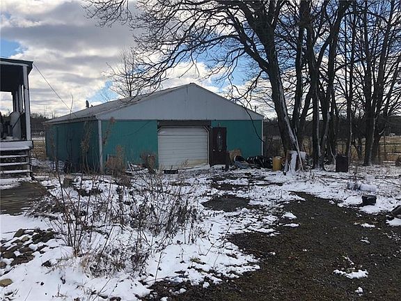 Over a half acre in a country setting. Mobile home needs a makeover. There is a very large 2 car garage with additional rooms for workshop or storage space. Sold as-is.