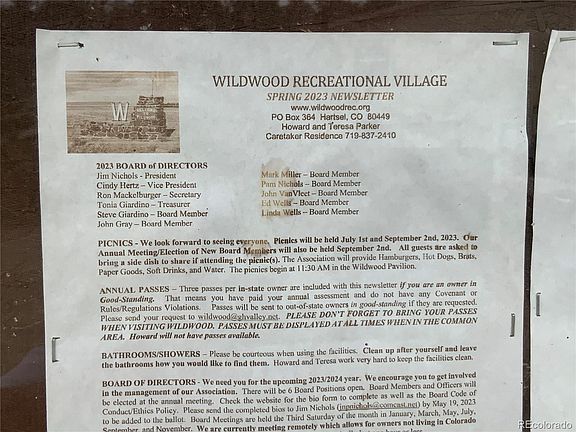 Stunning 5 Acres of flat land with awesome White Capped Mountain Views. Bring your binoculars and telescopes. National Forest Access to the East of the Subdivision! This lot is located in the Wildwood Recreational Village with really nice Amenities like a stocked Trout Fishing Pond, Showers, RV Storage, Water Fill and Dump Station. There is an on-site Property Manager! All of this for only $175 per year. If you like wildlife, this is the place for you. Plenty of hunting on nearby BLM land. Fishing? Yep, world class fishing at Spinney Mountain, Antero and Eleven Mile Reservoirs. Don’t forget the Dream Stream. Also, close by is the amazing Arkansas River with more stellar fishing and rafting. If you like skiing, Breckenridge is only an hour away. Come build your own retreat on five acres of beautiful land. Download OnX Hunt for a free seven day trial to locate property lines. All four survey pins were located and painted blue to stand out. Visit the onsite community manager to learn more about Wildwood Recreation Village. Manager lives in the home near the fishing pond which is right when you first enter Wildwood Recreation Village. Out of 423 lots 56 have already been built upon. Breaking news! Wildwood Reservoir is slated for 2030. This new Reservoir will deliver water to City of Aurora and offer new recreational opportunities for Hartsel. Location is approximately 6 miles to the west of Spinney Mountain Reservoir.