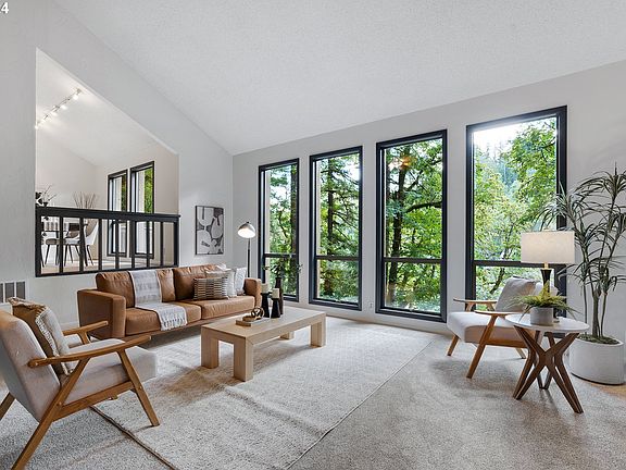 Move-in ready private oasis on the scenic Sandy River with a large shop! This Northwest Contemporary home sits on a gated one-acre lot just two miles from downtown Sandy. The home offers a great mix of character and river views with vaulted ceilings, exposed wood beams, and expansive windows. The kitchen has been updated with high-end Jenn Air appliances, a Miele dishwasher, and custom soft-close cabinetry with under-cabinet lighting. New white oak LVP flooring and plush carpet enhance the home's modern feel. Recent updates include a brand-new HVAC system, a newer roof, and all-new interior and exterior paint. This property also has a large detached shop offering ample space for hobbies, storage, or a home-based business.