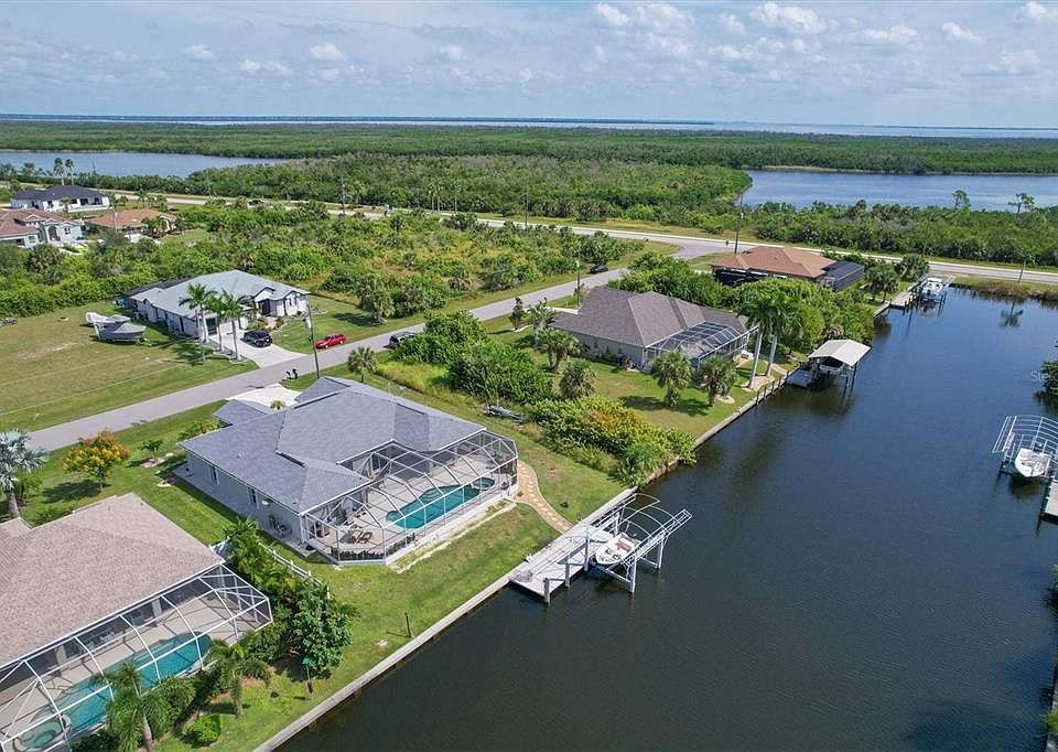Amazing opportunity to own a private piece of paradise. This 4 bedroom, 2 bathroom, heated pool and spa home is now available in South Gulf Cove. There is an additional room that is very large and can be easily made into a 5th bedroom or a den/office space but does not have a closet currently. So many features were included in this remodel but a few to mention are luxury vinyl flooring throughout, newer roof installed in 2019, remodeled bathrooms, granite countertops throughout, replaced water pressure lines, updated kitchen with newer stainless steel appliances, accordion hurricane shutters around the whole house, freshly painted interior and exterior, and the list goes on. The most important of all features of this property is your own private concrete deck with a 80 foot seawall that includes a 10,000 lb capacity boat lift with canopy, that provides easy access to the Charlotte Harbor and the Gasparilla Sound where some of the finest boating and fishing that Florida has to offer are found. You are only one lock away from the full access to the water, which is about a 5 minute boat ride. That alone is a boater’s dream in this area. South Gulf Cove is a sought-after neighborhood of mostly waterfront homes with limited deed restrictions and numerous parks including a boat ramp, master garden park, linear park, playground, and a clubhouse/meeting room for social gatherings. Conveniently located closed to shopping, dining, entertainment, beaches, and Boca Grande. This opportunity will not last long so call and schedule your private showing today.
