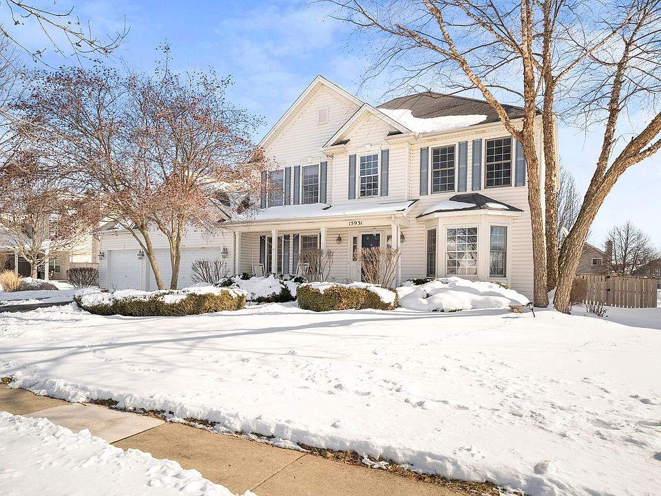 Fantastic Location! This home is nestled in the quiet, well-kept, and highly desired Fairfield Commons neighborhood just minutes from downtown Plainfield! The backyard is your own piece of paradise with a paver patio, swimming pool & pool deck, plenty of yard for entertainment and a fence for security. Enjoy cozy evenings around the fire pit. Inside this home is equally stunning with gleaming hardwood floors and a 2 story grand entrance. Off the foyer is a nice sized office with French doors that have blinds for privacy. Relax in the formal living area that has plenty of nature light from the large bay windows. The formal dining room will impress with large windows, tray ceiling, crown molding and chair rail and makes entertaining easy with access directly to the kitchen. This newly remodeled kitchen will catch your eye with hardwood floors, white cabinets, tile backsplash, quartz countertops, new light fixtures, new sink & basin, and trendy hardware. The island claims extra storage and a breakfast bar. The large eat-in area overlooks the gorgeous backyard views. Cozy up in this sizable family room that boasts of a brick gas fireplace with custom white mantle, vaulted ceiling, modern ceiling fan, and big bay windows. The family room and upstairs has newer carpet. The owners' bedroom includes plenty of space for any bedroom set, a modern ceiling fan and dual spacious walk-in closets. The en suite features dual vanities, separate shower & soaker tub, separate toilet closet, and new luxury wood vinyl flooring. Upstairs you will also find 3 additional large guest bedrooms that have ceiling fans, and another full bathroom with dual sinks and separate water closet for the shower/bath combo. The finished basement features TWO bonus areas that can be used as a game room, den, or an additional family room. The basement also includes a second gas fireplace and half bathroom. This house has so much storage! First-floor mudroom/laundry with washer and dryer staying. Plenty of storage in the 3 car garage with access door to the back. Only a few short blocks to I-55 and quick exchange to I-80 for an easy commute. This in the highly acclaimed PLAINFIELD SCHOOL DISTRICT 202 boundaries. Schedule your showing today, this is a house you don't want to miss seeing! Because of the influx of showing requests and trying to accommodate, we have opened showings up to overlap or allow 2 at a time.