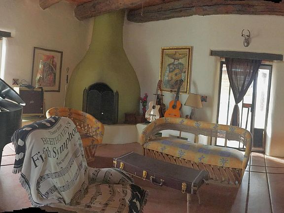 UNIQUE HOME! Built in a Barrio style featuring some original Barrio home items.Lower level of home is Adobe 18'' thick wall construction with upper level using frame/stucco. Ceilings on both lower and upper level are wood plank with massive Blue Spruce log beams. Large Beehive Fireplace with wood storage. A Gallery Foyer offers room to display collections and art work. Open stairway to upper level with Master Suite. Lower level has stained concrete flooring. Kitchen has stained concrete countertops and a vintage O'Keefe & Merritt Range/Oven. Three sets of patio doors lead to patio areas. Lower level has evaporative cooling and upper level is air conditioned. Ceiling fans throughout. Laundry and storage rooms are not heated or cooled.