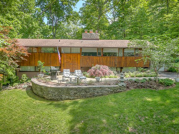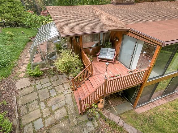 Exciting contemporary Deck House in the woods with 2 sun rooms and 12 x 24 greenhouse. Wood floors and wood cathedral ceilings. Two custom stone fireplaces. Quiet cul-de-sac on 4 lush acres with a mini barn and loafing shed..bring your horse! Backs to wildlife preserve and Cattail Creek. Listen to the sounds of nature. You have earned this peaceful living style.Fabulous home for entertaining. WOW!