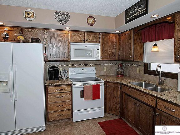 Great opportunity to own this well-maintained home! Perfect location, quiet street, Tons of wildlife, private fenced backyard w/XL Patio w/pergola. Eat-in kitchen updates include granite w/tile backsplash & new patio door. FR w/beamed ceilings & charming stone fireplace w/view of Dining room. Large bedrooms and a finished lower level. Just move in and add your own touches to make this your home. Extra large & deep garage, minutes to Zorinsky water park and lake, Park & Skutt High School.