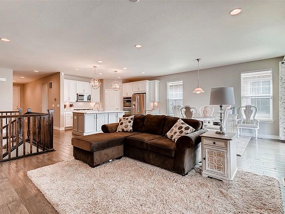 Don't miss your chance to own a better than new low maintenance Trailside Patio Home. No need to mow or shovel snow yourself! The HOA covers front and side yard maintenance and snow removal. This 4 bedroom,3 bath Ranch already has all the upgrades you're looking for. Home features welcoming front porch and 2 car-insulated garage. Solid hardwood floors throughout. Open concept with plenty of natural light. Beautiful kitchen features soft close cabinets with rollout shelves and a walk-in pantry. Quartz countertops grace the oversized island with additional cabinets. Spacious Master Suite with large walk-in closet and spa-like bath. Upstairs bedroom can be used as an office. Finished basement with huge Rec room, another bath and 2 more bedrooms each with walk in closets. Great covered deck with gas stub and no yard work! Enjoy the 2-sided fireplace from inside or out. Quick access to I-25 Close to shopping, Denver Premium Outlet, The Orchards Mall