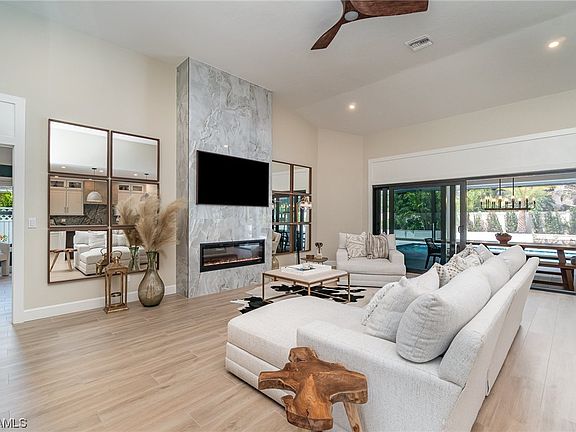 Welcome to your dream home! Better than new construction, this exceptional, ONE-OF-A KIND home is located in the coveted McGregor Woods community with its pristine Florida vegetation and mature trees, just minutes to Sanibel/Fort Myers beaches and marinas in south Ft.Myers. Every aspect of this stunning home has been FULLY REMODELED and designed with no detail spared, combining sophistication and functionality for the ultimate living experience. ***ALL NEW: ROOF, A/C, WIRING, PLUMBING, WATER HEATER, IMPACT WINDOWS AND DOORS, LANDSCAPING, IRRIGATION, POOL, HALO 5 WATER FILTRATION SYSTEM, LUTRON LIGHTING SYSTEM, CUSTOM POWER BLINDS.*** With four bedrooms and four baths, there is ample space to accommodate family and guests while ensuring privacy and comfort for all. The heart of the home is the expansive living area, characterized by an open layout that seamlessly integrates the living room, dining area, and gourmet kitchen with porcelain flooring throughout. Soaring ceilings and an abundance of natural light create an inviting atmosphere, perfect for entertaining or simply relaxing with loved ones. The chef-inspired kitchen is a true culinary haven, featuring high-end appliances, custom cabinetry and a waterfall edge brushed granite island. The magnificent master suite provides a relaxing retreat and features an oversize walk-in closet and spacious master bath with dual shower heads, dual sinks and heated towel bar. The remaining bedrooms are generously sized, ample closet space, and easy access to the well-appointed bathrooms, ensuring comfort and convenience for all residents and guests. The living area and master bedroom both overlook the LUXURIOUS BACKYARD OASIS offering privacy and tranquility featuring a BRAND NEW RESORT STYLE SALTWATER POOL WITH SPA and SUN DECK, marble and porcelain tile, sitting area with fireplace, and gorgeous outdoor bar, louvered pergola grilling area and full pool bath. All this under a picture-window screened-in lanai that showcases the elegant Florida landscaping, illuminated with uplighting. Your private luxury retreat in only minutes from Sanibel and Captiva Island Beaches with easy access to dining, shopping, and recreation. Plenty of added storage, Laundry room with sink, and a bonus…the garage has A/C and tile floor! Located in the highly desired McGregor Woods community, residents enjoy access to a CLUBHOUSE, TENNIS, PICKLEBALL, COMMUNITY POOL, SPA & FISHING PIER. This home represents a rare opportunity to own a meticulously renovated home in one of Fort Myers' most sought-after neighborhoods.