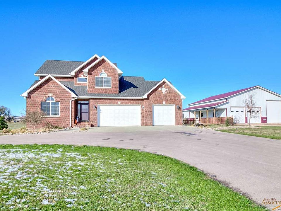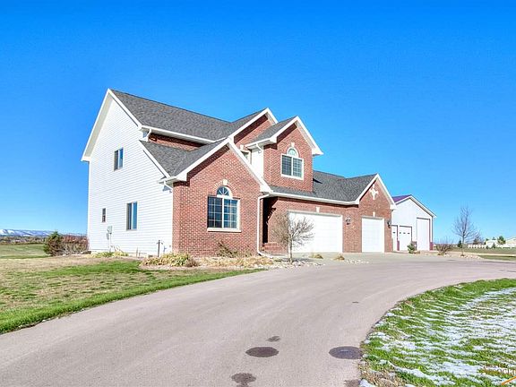 Are you looking for space between you and your neighbor? How about a beautiful view of Bear Butte & Black Hills from your patio while enjoying your outdoor fire pit? Come check out this 2-story home with fantastic curb appeal featuring 4 bedrooms plus office and 3.5 bathrooms. This property sits on 3.01 acres in Golden Valley Subdivision. Many updates which include the beautiful designed kitchen complete with breakfast nook, island and custom cabinetry. There is easy access to laundry from the bedrooms. Don't let me forget to tell you it has 2 master suites! Not only is the home beautiful but it also has a heated attached 3 car garage PLUS a large 50x48 shop building large enough to park your toys with the 14 ft garage door. The shop has running water and natural gas is waiting for a heater and a grill to be functional. Ample outdoor parking with the u-shaped driveway and separate driveway for the shop. Approx. 10 minutes from Rapid City!