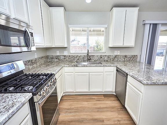 Newly upgraded home in the Heart of Apple Valley! This home boasts 3 bedrooms with a bonus room, 2 bathrooms, and over 1,500 SQFT. Upon entry, you're greeted by an abundance of space due to the open concept. Large living room accented by a stacked stone fireplace and flooded by natural light. Continue into the dining area that is open to the large kitchen. Step into the upgraded kitchen with gorgeous granite countertops, recessed lighting, tons of cabinet and counter space. The stunning luxury vinyl tile flooring flows throughout the home and makes for easy maintenance. This beauty possesses an oversized master with an en suite providing a shower / oversized tub combo, dual sinks with granite countertops, and ample counter and cabinet space. Sitting on .57 of an acre this home offers a large lot, 2 car garage, new paint, new flooring, new stainless-steel appliances, and so much more!