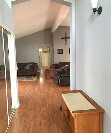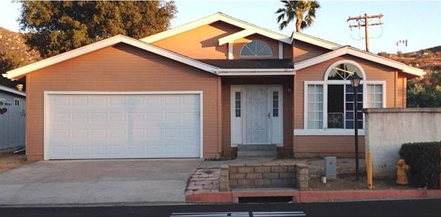 No showings until Monday, April 13, 2015. Great home with new paint in and out, new laminate flooring, upgraded bathrooms, huge rooms, a "dream" master bedroom suite and a nice-sized yard. The kitchen is 21 feet long & has a breakfast nook. Extra 14x8 room is the entry hallway. The laundry closet is located close to all 3 bedrooms. Potential RV parking space in designated lot for $50/mo. Lots of benefits for the enjoyment of the homeowners at Woodcreek -- see the photos. Just outside the living room is a big patio with a firepit. One of the larger homes in the community, this house backs up to a seasonal stream, Los Coches Creek. $826 per month land lease fee. Most utilities and services are put on your bill each month. You pay direct to Padre Dam Water District and your own choice of telephone company. Beautiful country setting, but not far from town. 4 miles to grocery and sundry shopping at WalMart, Vons, shoe store, UPS and more. 8 miles to Parkway Plaza for major shopping. Many restaurant and fast food choices. Close to bus transportation.