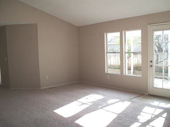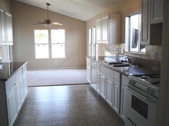 Home remodeled by lender--new carpet, vinyl floors, paint, 6-panel doors, sinks, toilets, bathrm vanities, faucets, all light fixtures, granite counters, new cupboards, range & dishwasher, stainless sink, faucet. Garage has been drywalled. Spacious living room & dining room, 2 doors to patio from living rm & master bedrm. Large master bath suite w/oval tub & separate shower. Laundry room off kitchen. Large fenced back yard. Attached 2-car garage w/direct entry to home. Central heat, air. Nice large fenced back yard. Partial landscaping in place. Can be enlarged if buyers wish, by arranging with Manager's Office to take care of the upper bank at rear of lot. North side of home could become a dog run with the addition of a gate at the back corner of the house.