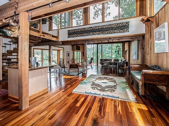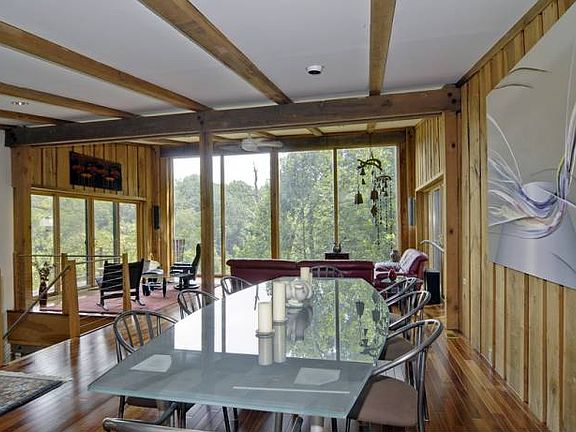 Inviting Contemp Post&Beam retreat w/stunning vistas, oversized windows&total privacy. Lush 4.75 acres w/woods/fields/stream. Main lvl open flrplan ideal for entertaining; great kit & oversize rear deck. Mst Bd Suite w/wall of glass, HUGE walkin closet, sep Laundry, super spa w/glass shower & extra deep soaking tub. UL w/Loft, 3 beds, library, and glass office. LL w/2-lvl fam rm & 10x60' wrkshop.