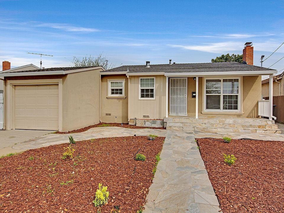 Super sharp house! 3 Bedroom, 1 bath with hardwood floors throughout Freshly painted interior Kitchen includes new stainless steel gas range, exhaust hood, dishwasher and refrigerator Breakfast nook in kitchen Bright living room with great natural light and recessed lighting Fireplace in living room is decorative only Bath is updated and has a shower over tub Low maintenance rear yard with storage enclosure (not completely enclosed) Front yard is also low maintenance and has a fence that also spans the driveway One car attached garage with interior access and laundry hook-ups Located across the street from rear side of elementary school Easy access to Bayfair BART and 880/238 corridor Tenant pays all utilities and maintains yards Sorry, no pets or smoking One year lease Renter's insurance required Security deposit $3550 One year lease Tenant responsible for all utilities