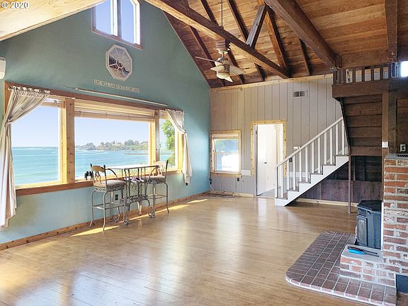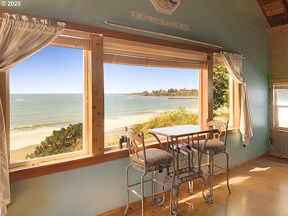 Hear, Smell or Feel the ocean. Prime oceanfront location to watch the whales migrate, the breathtaking sunsets and the Fireworks in July. Northwest CABIN feel with wood detail inside home from early 20's. 2 bedroom, 2 bath home plus loft. Updated kitchen, brick fireplace, open beams and updated windows. Wonderful STEPS to beach and grassy area with YURT that offers a special social setting and beach-combing opportunities. No CCR's. Potential vacation rental. ONE OF A KIND!