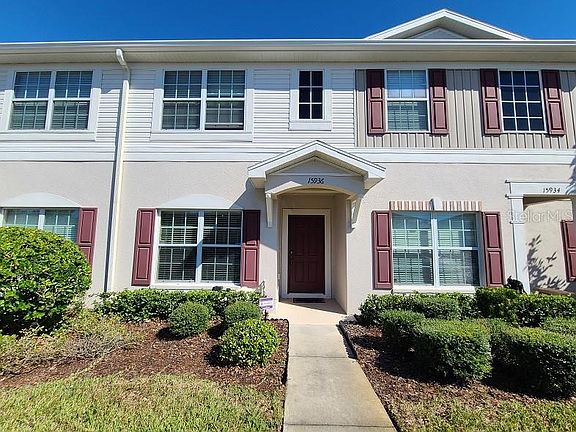 This updated 2 story townhome is in the well sought out gated community of Lone Star Ranch! Designated parking is right out front the lovely unit and there are ample guest parking spots throughout. Walk inside to the bonus den/office, open living/dining room, kitchen, and half guest bath. Tile throughout the first floor. Enjoy cooking in your dream kitchen, which offers granite countertops, stainless steel appliances, rolling island with stools, hanging potholder, pantry and pass through to the dining area. The second floor has tile in the bathroom and freshly cleaned carpets. The second-floor features both spacious bedrooms, 2 full baths and a laundry closet. The laundry closet has a washer and dryer for tenants use. All Bathrooms have granite vanities. Guest bedroom has a large closet and full bath nearby. The main bedroom has a walk-in closet and a private bath with shower. Storage is offered under the stairs and on the back patio. Sliding glass doors in the kitchen lead out to the large screened in patio. No rear neighbors! This neighborhood offers a community pool. Suncoast trails nearby for walking, running, biking, ect. The home is close to the Suncoast for easy travel. Trash and Lawn care is INCLUDED in rent!