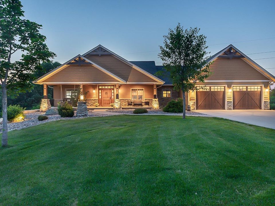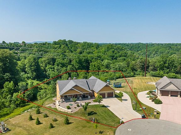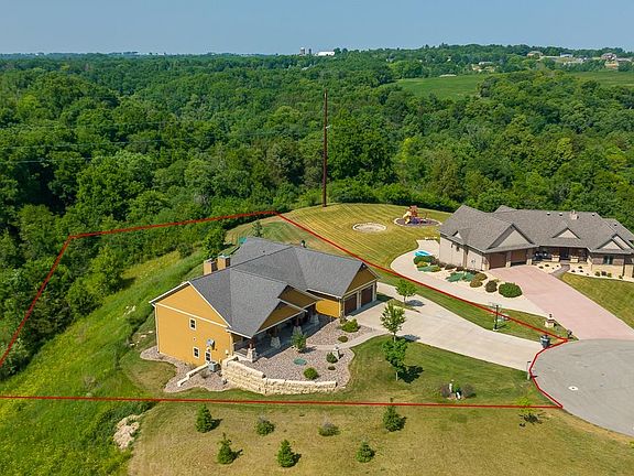 Immaculate walkout ranch in Woodmoor Estates! Situated on a 1.19 acre lot at the end of a quiet cul-de-sac, this Gerb Smith custom-built home boasts amazing detail throughout! Right when you step through the front door you'll notice the large double sided stone fireplace, the vaulted, decorative wood ceiling, and beautiful 1 inch solid acacia hardwood flooring. In total there are 4 bedrooms, 5 bathrooms, and an impressive 8 car garage. If you're looking for garage space, this is truly the home for you! The lower level capped garage (with a driveway) is immense and absolutely perfect to store anything and everything you need. Back inside, you'll love the gourmet eat-in kitchen with ample cabinet space and the generous sized island. Spread out and make yourselves at home with over 2,700 finished square feet on the main floor and the functional split-bedroom layout. The master suite offers dual vanities, tiled shower, tub, and walk-in closet. The two other main floor bedrooms are conveniently connected by a jack and jill bathroom for ease of living. The finished lower level is built for entertaining with the incredible bar with a live edge bar top! Picture all your gatherings or movie nights down here in this gorgeous space! You'll notice the wood burning fireplace that has vents running upstairs and downstairs- ideal for cutting those gas bills! The basement is also complete with an additional bedroom, bathroom, and non-conforming bedroom- perfect as a gym, playroom, office, or extra bonus room. Other features of this home include an irrigation system and sound system. Spend your days on the back deck watching deer run through the yard or on the oversized front porch watching cows graze from the comfort of your porch swing! The amazing wooded backyard is complete with no neighbors directly behind you! Start your next chapter in this incredible house and there's no doubt you'll be proud to call this "home!"