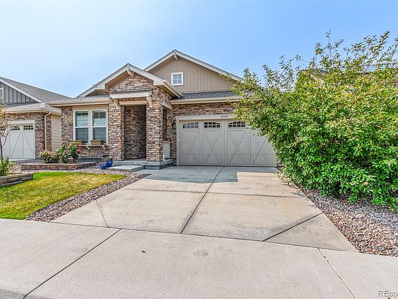 Step into refined elegance with this move-in-ready stunner in Thornton, where every detail reflects a deep sense of pride and meticulous care. Poised on a tranquil greenbelt, this exquisite ranch patio home exudes charm with its stone accents and beautiful landscaping. The harmonious open layout immediately captivates, bathed in abundant natural light that dances across chic plank flooring while the soothing color palette and modern recessed lighting set a serene tone. At the heart of the home, the fireplace acts as a focal point, while elegant touches like top down/bottom-up shades enhance the environment. The gourmet kitchen is home to stainless steel appliances, a double wall oven, and pristine white cabinetry capped with crown molding. Quartz countertops and a stylish tile backsplash complement the culinary space, while a center island with a breakfast bar enhances both form and function. The main floor primary bedroom is a true retreat; with a generous walk-in closet and ensuite with dual sinks, this space has it all. An additional spacious bedroom and an office with French doors completes the main level, offering versatile living spaces. Descend to the fully finished basement, where a spacious family room, third bedroom, and full bath provide ample space. The basement also features a convenient wet bar and a bonus workshop. Outside, the serene backyard beckons with a quiet deck, ideal for savoring peaceful mornings. The low-maintenance landscaping ensures you spend more time enjoying your surroundings and less time on upkeep. The oversized two-car garage offers ample storage and convenience. Situated in a quiet community with a central park, this home offers a perfect blend of tranquility and accessibility. Close to shops, restaurants, and major highways (I-25 + E470), it promises both comfort and convenience. Welcome to a home where every detail has been thoughtfully curated to create a harmonious and inviting living experience.
