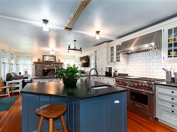 Sitting on the banks of the Roeliff Jansen Kill, is the 37 acre Fallkill Farm, which has been in the same family for 52 years. The original house and barn were constructed by Dutch settlers in the late 18C. Since then, the main residence has enjoyed several renovations and additions, the most recent of which was the kitchen and family room. The kitchen renovation included the addition of high end appliances including a Subzero refrigerator and a Wolf range, plus soap stone counters; it opens into a family room which includes a dining area and a stone fireplace. The residence retains many of its historic and vintage details including wide board floors, beamed ceilings, and a total of six fireplaces. And yet the house has been modernized with updated plumbing, 200 amp electrical service, central AC, and a metal roof. The farm complex includes a 4 bedroom guest house, a 7500 sf barn, a chicken coop, a workshop, a pasture shed (horse barn), and a 4 bay garage. The farm is minutes away from the TSP, making it a convenient drive from NYC or Brooklyn. It is close to the charming villages of Rhinebeck, Red Hook, Millbrook, and Hudson, all of which offer many dining and shopping opportunities.