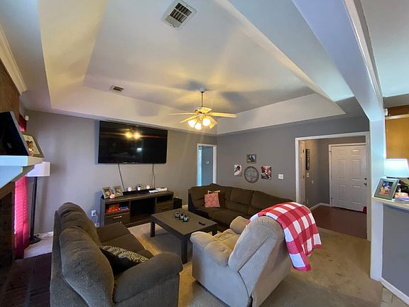 All Brick single story split floor plan home with double garage fenced yard with patio. Master has double vanity, separate tub, and show. Living room with Fireplace and open feeling with natural light. Separate laundry room with cabinets.