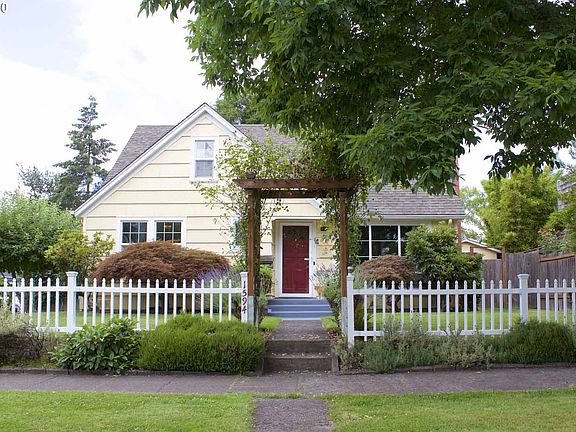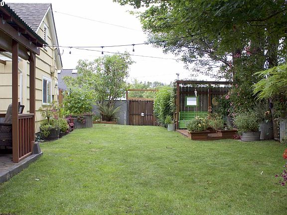 Extremely well maintained cottage style vintage home, conveniently located, near neighborhood park, ally access, backyard full of surprises with a covered pergola for outdoor entertainment, 2 outbuildings, fenced garden space w hot tub, private yard with lush trees and mature plants, interior features wood floors, coved ceilings, built in nooks and deco shelving, formal dining area, indoor utility space with sink, private office space,