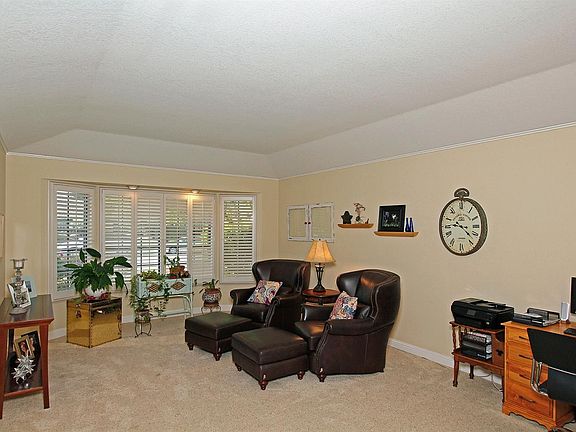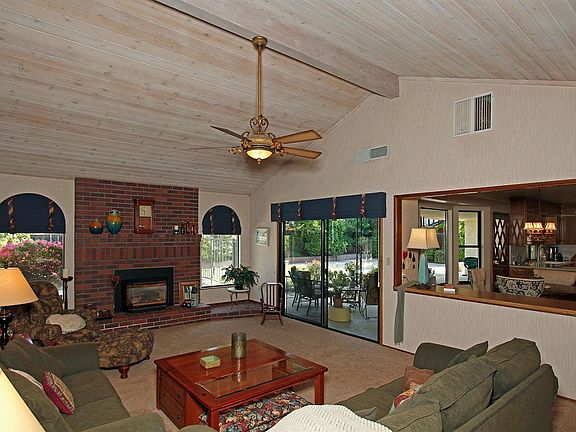 Beautifully maintained and updated 4/3 in a wonderful neighborhood. Large entry flanked by a formal dining room and formal living room, both with coffered ceilings. Step down living room with vaulted wood ceilings, and great views of the gorgeous back yard. The kitchen is open, bright, and has been updated, has dual ovens, and the family eating area has plenty of storage, and a custom mini entertainment area. There is a large game room with a built in entertainment unit, more closet space, and a bathroom that opens to the back yard. The laundry area is huge, and has a large pantry as well. All of the bedrooms are large, as are their closets. The master has a huge walk in closet, and the master bath has a step down shower, dual sinks, and a large window to the private back yard. Huge covered patio, large grass area, and a basketball hoop set in concrete on one side, fenced gorgeous pool on the other. Multiple fruit trees. Newer roof, AC units & pool pump. Large gated side yard
