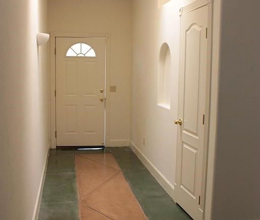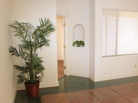 Sharp and loaded with extras! Polished concrete flooring in living area, designer niches, lots of windows for natural lighting. Kitchen has tile counters and lots of light. Master suite includes a soaking tub with shower and glass block window, spacious closet, dual vanity sink, glass slider to covered patio. Additional guest parking adjacent to home. Great north central location in much desired Crest Ranch.