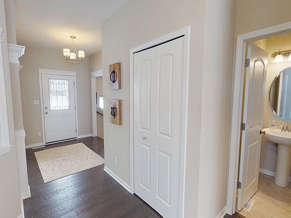 4 bedroom, Loft, 2.5 Bath, 2 car Garage with concrete drive-way and full basement. First floor 9' ceilings, upgraded flooring, Oak and metal railing main floor. Painted white cabinets w granite counters, Island with overhang, and walk in pantry. Owner's bath has double sinks and walk in shower. Second floor laundry and loft. Stainless Steel kitchen appliances and landscaping package included. Landscaping & full sod yard included.