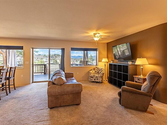 Nestled into the hillside on 5 acres, this home provides not only the practicality of proximity to town essentials like the grocery store and hospital but also the luxury of seclusion and tranquility. Enjoy the hillside panoramas and soak in the warmth of the sunset from your choice of two covered porches – one showcasing the surrounding natural landscape and another overlooking a fenced-in yard. Built by the award winning Colorado Dream Homes (known for their energy efficient design) it has been crafted with meticulous attention to detail, this property exudes thoughtful design, ensuring optimal privacy from neighboring residences. The house features an energy-efficient construction (R49) and an ADA-compliant master suite, offering a harmonious blend of comfort and accessibility. The ranch-style floor plan seamlessly joins together an open kitchen, dining, and living room, allowing natural light to flood the space, and creating an inviting and airy atmosphere. It also offers a full dedicated home office/flex space. For outdoor enthusiasts, an attached heated garage provides ample storage for both everyday items and essential equipment for your Colorado mountain adventures. Additional storage include a shed and a greenhouse, catering to those with a green thumb. This residence embraces modern living with features such as a tankless on-demand hot water heater, a mini-split system for efficient heating and cooling, and the convenience of city water. The kitchen and bathrooms showcase custom hickory cabinets, adding a touch of rustic elegance, while a water filtration system enhances the quality of your cold drinking water. In essence, this home offers a lifestyle of comfortable, energy-efficient living, where every detail has been considered.