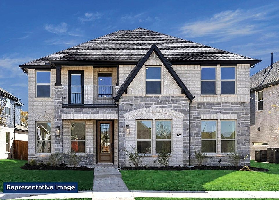 Experience luxury living in this stunning brand-new home on a desirable corner lot, offering 3,421 sq ft of thoughtfully designed space. Featuring 6 spacious bedrooms and 4 full bathrooms, this residence welcomes you with a charming front porch and a grand entryway highlighted by soaring ceilings and a graceful curved staircase. The open-concept family room is bathed in natural light from expansive windows, creating an inviting atmosphere for relaxation and entertaining. A generous 2-car garage adds convenience. Schedule your tour today! Princeton 2R-CW - C | Villages of Creekwood | Frisco, TX