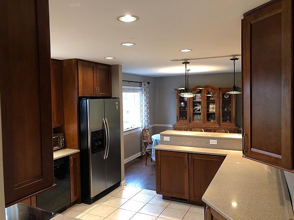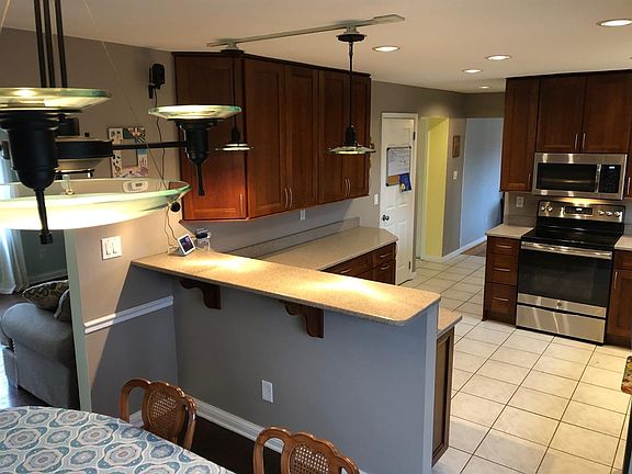 - RoomKitchenFeatures: Tile Floor, Solid Surface Ctr, Gourmet, Wood Cabinets, Counter Bar
