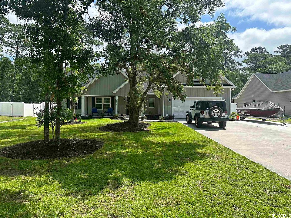 AWESOME OPEN FLOOR PLAN AND NO HOA!!. Boasting board and batten vinyl siding across the front, with a sitting porch on the front and screened porch out back Approx. 55 feet of driveway and 2 Garage bays means lots of parking or space for toys ( kids or adults) . Lot is 0.43 acres. Screened in back porch for those summer evenings. Front porch, patio, pantry, separate laundry room are features not to miss. This home is conveniently located to all things Little River has to offer and a short drive to Calabash or Cherry Grove Beach. Once you call this home you'll never be far away from golfing, fishing, dining, shopping... sand, sun and fun!!!