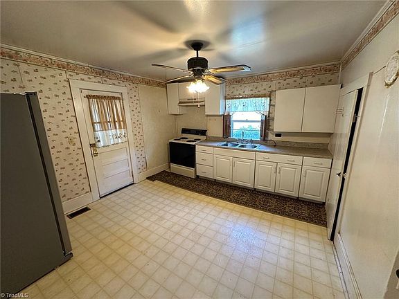 Bungalow home on corner lot with some recent updates and tons of remaining potential. Recent HVAC system, roof, and Generac natural gas powered generator. Well and septic. 2 bedrooms on main level with full bathroom and large kitchen. Bathroom has recently been upgraded to accessible shower with grab bars. Upper level has 2 additional semi-finished rooms but the ceilings are about 6'2" so could not be counted in overall heated square footage - but have potential to increase the liveability and size of this home - septic permit is 3BR. Large lot with abandoned mobile home - left at no value. Low Stokes County property taxes