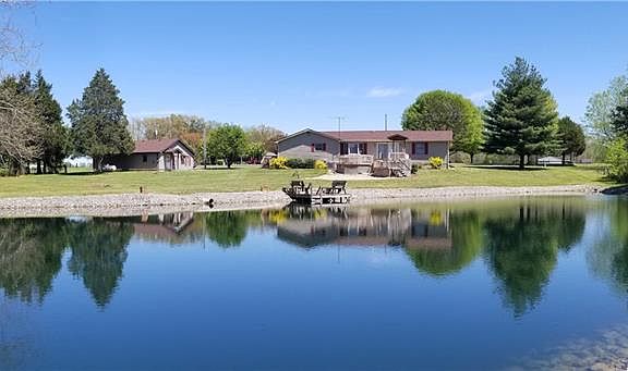 ONE OWNER/Custom build! CHECK OUT THE VIEW! 3 bed/2 bath on 3 ACRES, 2-Car Attached Garage and a 2-Car Detached Garage that offers a studio apartment with a Kitchen and full bath! Property has a CREEK! This home won't last! It offers approx. 1,512 sq. ft., NEW ROOF (installed June 2019) on home and garage, furnace is only approx. 2 years old, small partial basement for storm shelter/additional storage and a LARGE approx. 1-ACRE POND w/lots of decking to enjoy your own PRIVATE back yard view! Shed stays and propane tank is owned. ALL data is APPROX. and should be verified by Buyer's via home inspection and/or survey. Inspections WELCOME @ Buyer's expense - SOLD AS IS @ Closing.