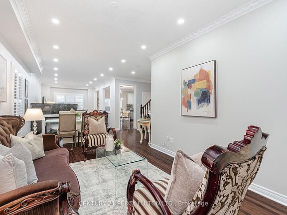 Beautiful 4 Bedroom 3 Bath Home * 2nd Bedroom Can Be Returned to Family Room with 10 Ft. Ceiling * 9 Ft. Ceiling on Main * Hardwood Floors Thru-Out * Crown Moulding * California Shutters * Two Sided Fireplace Between Living and Dining Room * Large Deck in Backyard * No Grass to Cut * Interlock Front and Back * Close to Shopping, Hwy 407, Restaurants and more