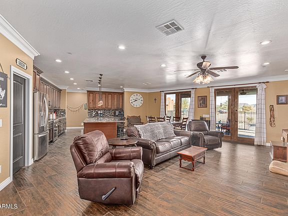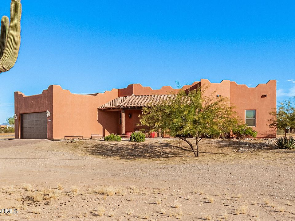 Welcome to your dream oasis for outdoor living! This stunning custom home sits on 2.5 acres of desert bliss with jaw-dropping mountain views. Imagine waking up to views of the rugged beauty right from your doorstep. But that's not all - this home is a haven for outdoor enthusiasts. Dive into the sparkling pool or saddle up your horses in the 36'x48' 8 stall mare motel, a true horseman's dream come true. Complete with auto water, electric, and a high-pressure misting system, your equine friends will be living the good life. Need storage? We've got you covered with the 20'x12' custom hay barn tac room. For all your equine activities, check out the 80'x260' custom corral, featuring a brand new 40' round pen. The horse side connects seamlessly to the house side with permit-ready architecture plans for a culvert. Oh, and did we mention the 2 bed, 1000 SF guest house/casita pad is already built and ready to roll? Now, let's talk about the heart of the home. Walk through the ornate front doors to discover beautiful plank tile floors and an open floor plan - perfect for hosting friends & family. The kitchen is a chef's dream with knotty alder wood cabinets, granite counters, a large island with a breakfast bar, stainless steel appliances, and a range with double ovens. Plus, there's a walk-in pantry for all your snacks and goodies. The master bedroom is a sanctuary with crown molding, a walk-in closet, and a stunning en-suite that boasts a double vanity and a massive step-in tiled shower. But real magic happens outside. Step onto the large brick-paved covered patio with ceiling fans, a fenced sparkling pool, a built-in BBQ area, and a custom pizza oven that takes outdoor entertaining to a whole new level. And there's more! Follow the paver walkway to your detached 30'X40' workshop or garage - the perfect space for all your toys and projects. This home is not just a house; it's a lifestyle waiting to be embraced. Don't miss out on making memories in this outdoor enthusiast's paradise!