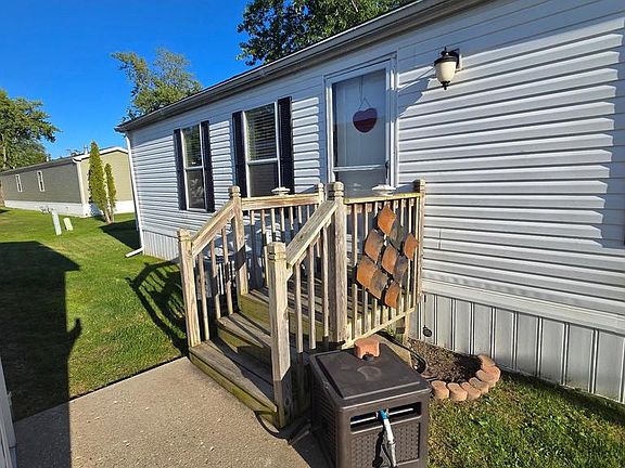 Harvest View Estates Mobile Park is located in the village of Union Grove, WI, and the Town of Yorkville, WI: no land, mobile house, garage. Furnace and water Heater installed in 2015. Central heater/conditioner. All dimensions are approximate. Water test done in January 2025. Charming, upgraded, clean mobile home features 3 bedrooms and 2 full bathrooms. The master bathroom has a Jacuzzi Tub and a Shower. 2nd bathroom has a stall shower and tub. Please see the attached document for all property improvements, including the detached garage. Monthly Land rent $600.