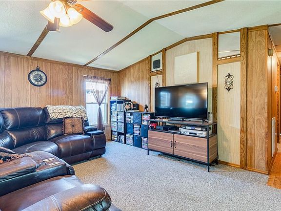 Close to downtown Pea Ridge but with a nice country setting! Great single-wide on almost 1 acre - 2 lots, new kitchen, new water heater, new heat pump, more! 3 carports, 10x12 Morgan Building, 12x24 cabin (fully wired, own breaker-box, walls insulated, hot tub on porch) Awesome above-ground storm shelter, great barn with workshop. Full RV hookup behind barn includes septic use. 2 walk-in showers. Living room has vaulted ceiling and is open to the kitchen. Kitchen has plenty of cabinet space and an eat-in space. Public water but has a well as an alternative water source. Enjoy the natural surroundings! Don't miss this one!