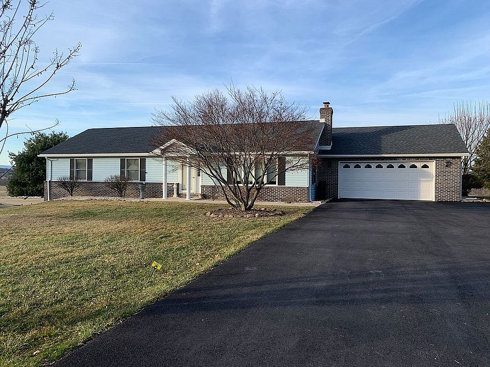 Check out the views!! This rancher with a full basement is definitely one to see! Everything you need is on one floor, with 3 bedrooms, 2 full baths, and laundry all on the main level. Kick back and relax or enjoy quality time in the spacious living room. The open kitchen dining room area offers plenty of counter space and cabinets with space to gather with family and friends. Just off the dining room, you can walk out to the screened in porch and patio area where you can relax, enjoy the nice weather days, and appreciate the marvelous views. The oversized garage has room for parking and storage, along with the long driveway and parking pad for additional parking. The full basement is partially finished and already set up with additional living space and a separate area with a workshop. Recent updates include newer roof, A C unit, and water heater. Sitting on one acre with no HOA, you'll definitely want a chance to view this beautiful, well maintained home!