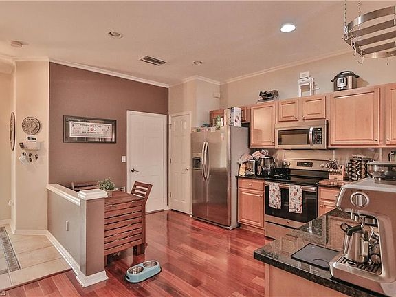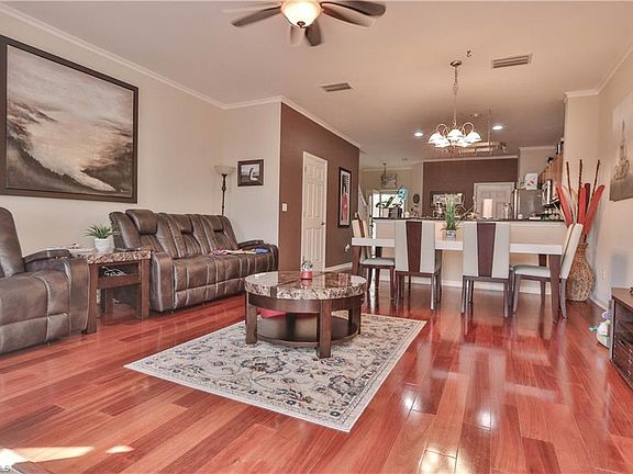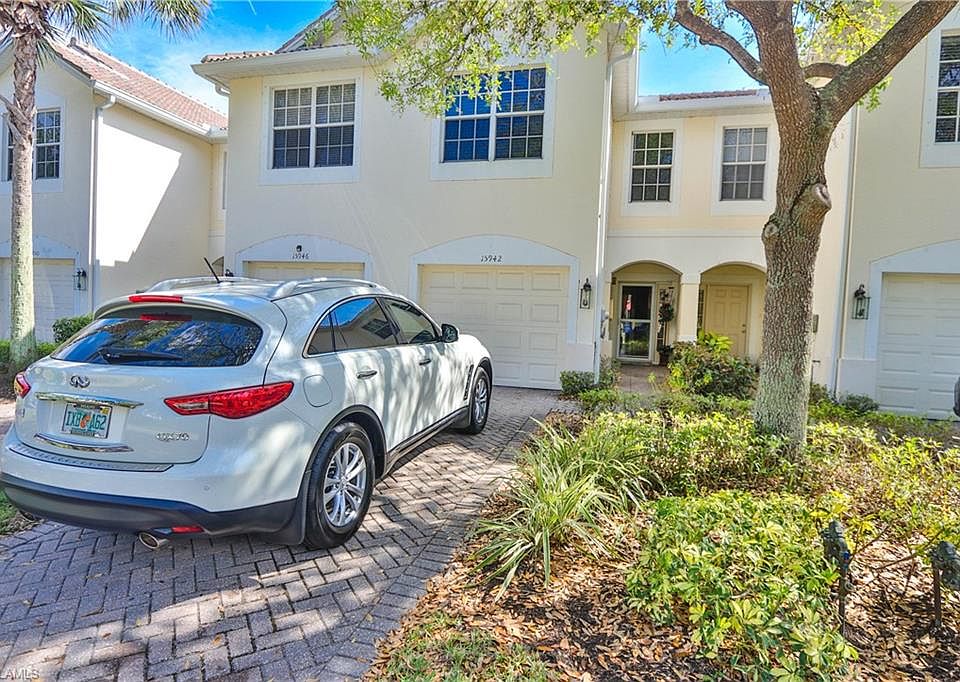 This one shows like a model! WALK across the street to the amenity center/pool!!! Highly upgraded with lake and fountain views throughout this beautiful 2 story 3 bedroom, 2.5 bath townhome with an attached garage. Some nice features include wood flooring downstairs, newer berber carpet upstairs, crown molding, fresh paint, upgraded lighting and fans, granite counters, stainless appliance (brand new fridge), upgraded master bath and more! Properties main living area downstairs with a half bath, with the master and both guest bedrooms along with two full baths as well as laundry room on the second floor. Boasting a comfortable and open near 1600sqft of living space with reasonable HOA fee's which include cable/WiFi internet, lawn care, irrigation water and more, in the most central Naples location this is one you sure dont want to miss!
