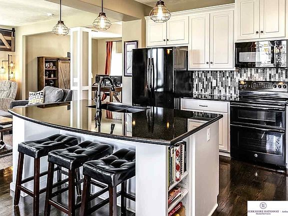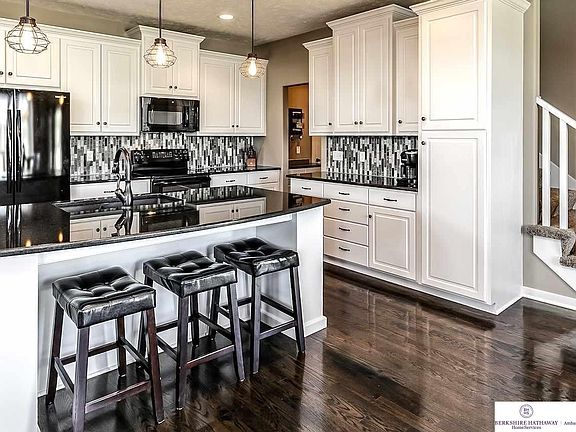 Better than new 2 story home in Bennington. From the eye catching curb appeal to the gorgeous and inviting interior spaces, this home truly has it all! Boasting an open concept floor plan featuring a kitchen with beautiful wood floors, granite countertops including huge island, white cabinets, large pantry, dinette area & spacious living room, with fireplace, both surrounded with windows to bring in tons of natural light. Main floor also has a flex room perfect for an office or a formal dining room + a drop zone off of the garage. Rear staircase design leads upstairs to 4 oversized bedrooms and 2nd floor laundry room. MB features dual closets + a master bath with tile floors, dual sinks & walk in tile shower. Additional features include 3 car garage, abundance of storage space, beautiful landscape design, backyard with patio + home is close to neighborhood school.
