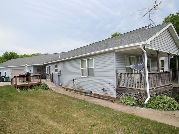 Spacious rambler on 3.75 wooded acres with outbuildings galore! From the 40x60 heated shop, to the 30x44 quonset, to the 30x50 attached garage, to all of the garden sheds, gazebo, and lean-to...you aren't going to run out of room! The spacious walkout rambler features a large living room with lots of natural light, kitchen with center island and flat panel arched cabinets, an open dining room with patio door leading to the deck, office space, two main floor bedrooms and two main floor bathrooms including a master bath and a half bath in the main floor laundry. The lower level has a family room, two additional bedrooms, a ¾ bath, several storage rooms- tons of storage throughout! All of this situated on a beautifully treed lot with steel siding, gutters, and a welcoming covered porch. Handicap accessible with ramp (can be removed) and roll-in shower. Come take a look!