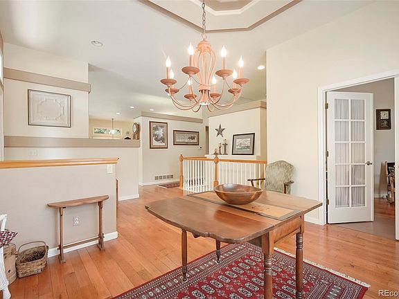 Nestled in the foothills where wildlife abounds, this Willow Springs area home is a quiet and peaceful retreat. Easy MAIN FLOOR living makes this home attractive to all. Immaculately maintained and updated with a new roof, new furnace, and new AC. The gourmet kitchen with double ovens, granite countertops, a chef's sink, and pantry make for easy entertaining with the connected family room. Wood floors with vaulted and high ceilings throughout bring a feeling of peace. The large covered deck enables you to enjoy your days and evenings outdoors. The spacious master suite boasts a vaulted ceiling, a 5 piece bath, and a large walk-in closet. In addition, the home has a secondary bedroom on the main level as well as an office and additional full bath. The basement is a haven with luxury carpet, a large rec room, great craft or storage room, a bathroom with shower, as well as 2 additional bedrooms. Space for everyone! The lower level also features a wetbar with a full size fridge for guests staying on the lower level. The attached 2.5 car garage is ready to house your golf cart in addition to two cars. And the HOA makes your life easy by providing yard maintenance including the sprinklers, mowing, and snow removal of the driveway. This is a fantastic community surrounded by Red Rocks Country Club with its 18 hole private golf course and hundreds of miles of open space and trails. Colorado Living at its finest!