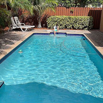 Beautiful backyard with pool and ozom landscape and Gazebo .