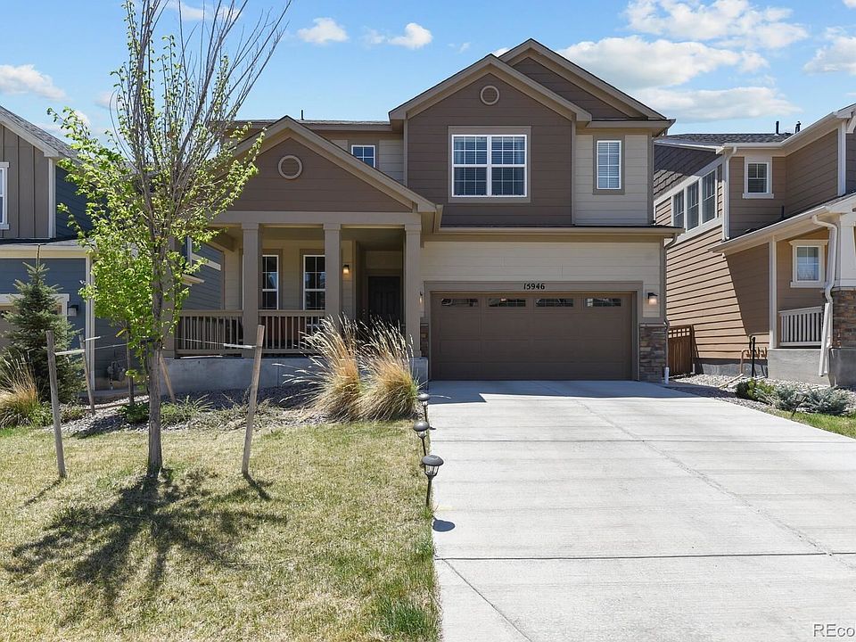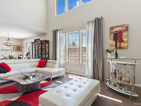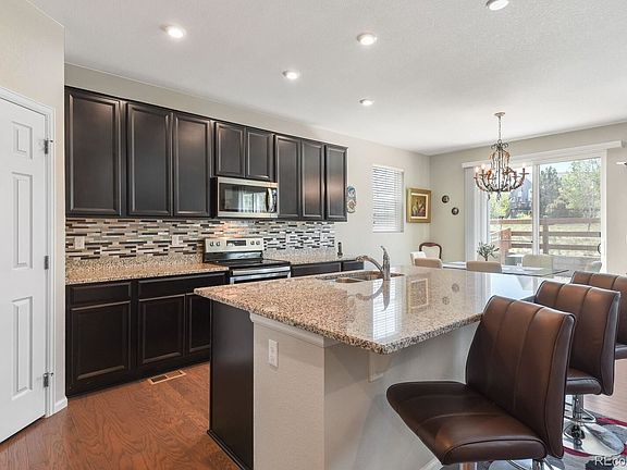 Definitely a must see! This model is the largest and most beautiful in the family friendly Trails Edge neighborhood. It features a great location as well since it is one of the few properties in the neighborhood that backs up to the green belt, therefore offering privacy and pleasant views. Once inside, you realize that this less than four year old home has been maintained as essentially new and is being offered by the original owner. This four bedroom home was built with a bunch of upgrades such as hardwood flooring throughout the main floor, granite counter tops in the kitchen, upgraded tile in the bathrooms, and 5 piece Master Bathroom. There are two separate A/C condensers (one for each floor with dedicated thermostat control for each). Equipped with Smart Thermostat, Smart Sprinkler. The house is light, bright and airy! The kitchen has a large pantry, 42 cabinets and granite topped island. The laundry is conveniently located on the second floor. The unfinished full basement also has a lot of natural light with several large windows and great potential for finishing. Minutes away from schools, access to E-470, I-25 and countless retail, shopping, and restaurants. Cherry creek schools. This house is the most move-in ready gem that you will find!