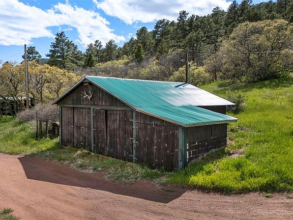 Truly special Colorado dream available for the first time on the open market. Charming log cabin positioned right outside of the picturesque town of Palmer Lake on 35 acres of diverse vegetation - hay field, lush meadow w/ wildflowers, large boulder outcroppings and a mixture of ponderosa pines, spruce, scrub oak and fir trees. Phenomenal sweeping views of the surrounding treed buttes and mountains. Ag zoning allowing for two full size homes as well as a guest house to be built. Two turn of the century barns, detached workshop/storage building, a metal chicken coop, original outhouse and studio. The cabin has been lovingly cared for and maintained. The cabin has large windows for loads of natural light, new carpet, new LVP and awe-inspiring views. The great room has beamed ceilings with tongue and groove wood, moss rock wood burning fireplace, original custom built-ins, solid wood unique doors, tongue and groove wall coverings and new lvp plank flooring over hardwood. Eat-in kitchen w/ original hand made solid wood scalloped cabinetry. Main level bedroom and two lower level bedrooms. Light flooded main level office w/ windows surrounding two sides and a walk-out to the 21x12 deck with amazing views. The lower level family room has a moss rock wood burning fireplace, timber support beams and wood walls. The bathroom has been completely remodeled. Developed trail that provides access up the mountainside via suv, atv or horses with amazing vistas. No covenants or HOA. Zoned for horses, other livestock and outbuildings. This is the best of both worlds - great access to the every day amenities while living on gorgeous and private acreage. The Quick access to Highway 83 and I-25. Located with easy access to Colorado Springs, Palmer Lake, Monument and Denver on year-round maintained paved roads. No HOA or covenants. Additional 72 acres w/ cabin bordering this property is available for purchase which would be a total of 107 acres with both properties.