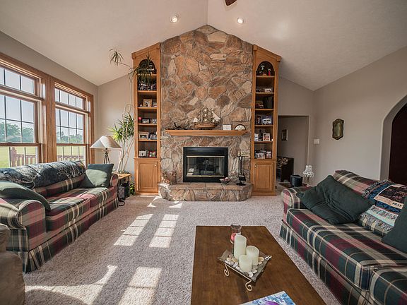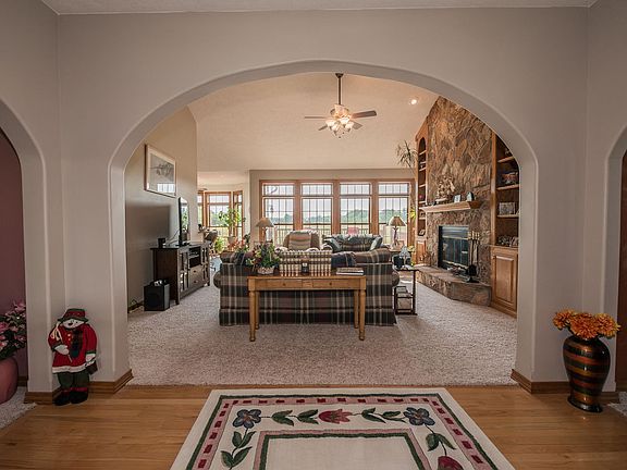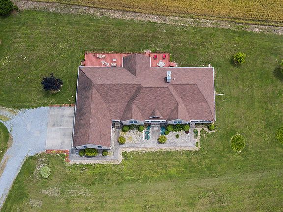 Gorgeous home in the country on 11 acres. Includes pole barn with stalls for horses, and a stocked pond. Inside you'll see arched doorways, a kitchen furnished with GE Profile appliances, maple cabinets, and a walk in pantry. In the breakfast area you have a bay window with a beautiful view of the fields, and French doors onto the deck. The home has two fireplaces, a central vacuum system, geothermal heating/cooling supported by 5 underground wells. Each bedroom has a walk in closet, solid wood doors throughout, and ceramic tile in all of the bathrooms, both kitchens, laundry room and sun room. The sun room is a wonderfully bright room off the master bedroom. Basement includes a kitchen, his/her bathrooms, living room, rec room dining area and office.