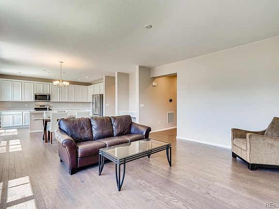 You will love this like-new 2-story "Yampa" Meritage 3 bedroom home with an oversized covered front porch leading into the grand two-story foyer. Energy efficient Smart Home features - digital sprinklers, doors, thermostat, video doorbell. Oak flooring covers the entire main floor. Beautiful kitchen with a large island for entertaining, upgraded cabinets, gas range, upgraded refrigerator, quartz counters, stainless steel appliances, walk in pantry, dining area open to the great room with a built-in desk area! A full, unfinished basement with stamped concrete window wells, new furnace and tankless water heater. Master suite features a stunning master bathroom and a large walk-in closet. Convenient upstairs laundry, machines included! Spacious loft. Upgraded carpet throughout the second level. Backyard is unfinished and is open to your creativity. Home backs to open greenbelt area. The new Trails Edge community is conveniently located just minutes from the Denver Tech Center, enjoy easy access to Downtown Denver and proximity to excellent dining and shopping at Park Meadows, Arapahoe Crossing, and Downtown Parker. Known for their energy-efficient features, these homes help you live a healthier and quieter lifestyle while saving thousands of dollars on utility bills. Trails Edge has a neighborhood park, walking and biking trails connecting to Happy Canyon Trail and Cherry Creek Trails. Cherry Creek Schools!
