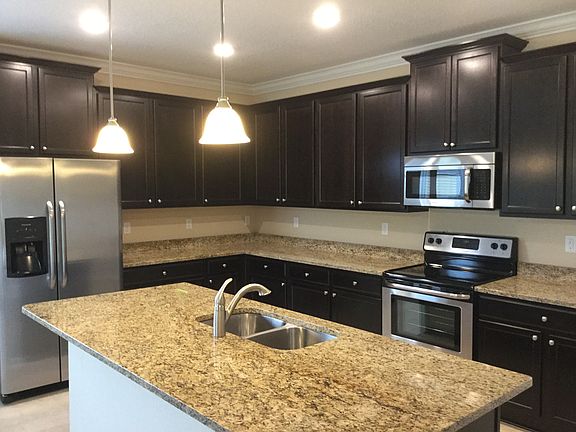 First floor master suite Ceramic tile floors in entry, kitchen, baths & laundry Formal dining room Spacious kitchen with island Pavered driveway and walkway Study with glass french doors Kitchen features Frigidaire® stainless steel appliances Covered patio with TV cable outlet Crown molding in main living areas and master suite